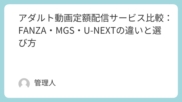動画配信サービス アダルト動画定額配信サービス比較:FANZA・MGS・U-NEXTの違いと選び方
