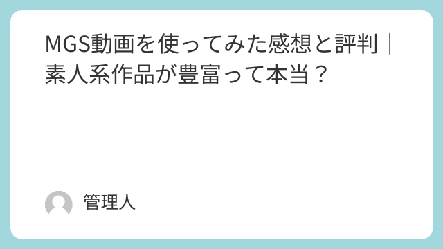 動画配信サービス MGS動画を使ってみた感想と評判|素人系作品が豊富って本当?