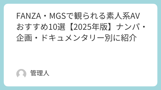 シリーズ FANZA・MGSで観られる素人系AVおすすめ10選【2025年版】ナンパ・企画・ドキュメンタリー別に紹介
